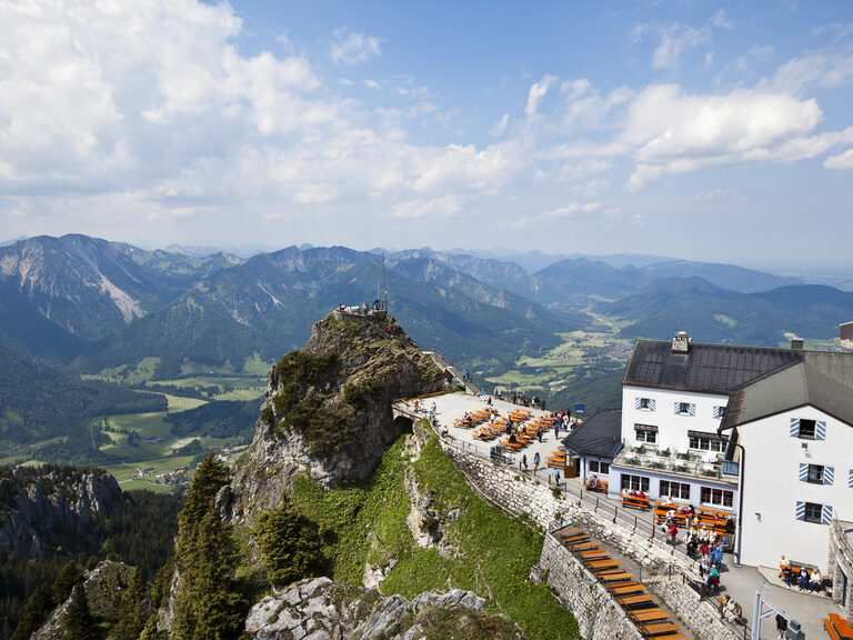 Fahrt nach Aschau im Chiemgau (ca. 35 km) zur Talstation der Kampenwandbahn (ab 20 Personen ca. EUR 10,00 pro Person). Mit festem Schuhwerk können Sie eine Bergwanderung zum Berggasthof vornehmen und eine Einkehr mit einer herrlichen Aussicht genießen.